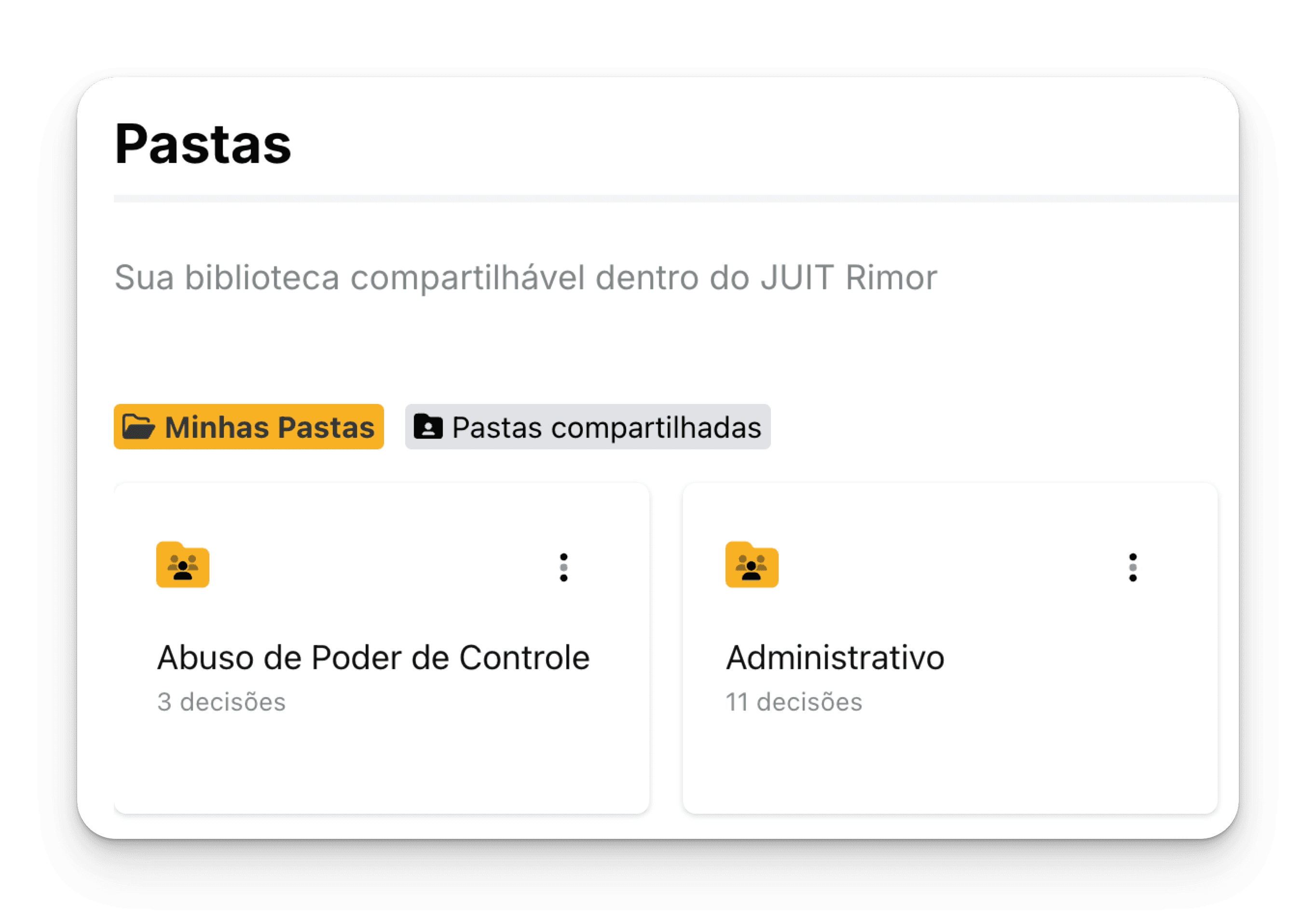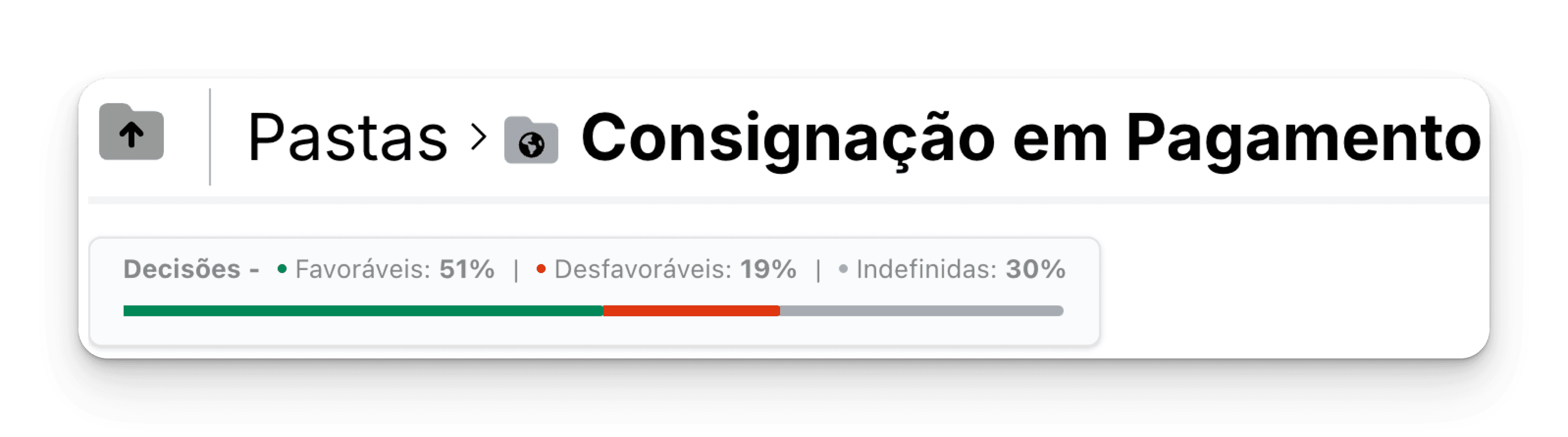 Crie pastas de trabalho colaborativas, compartilhe com as equipes e eleve o nível da produção da sua organização. Tenha acesso a jurimetria das pastas, com índices de favorabilidade para cada uma de suas teses.