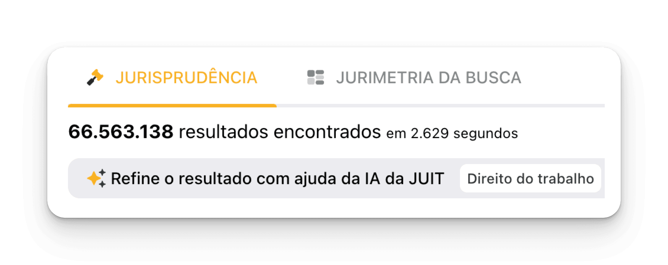 Com o Índice JUIT de Relevância (IJR) você encontra as decisões mais relevantes para a sua pesquisa em poucos segundos. Pare de gastar tempo para encontrar o julgado que resolve seu caso.